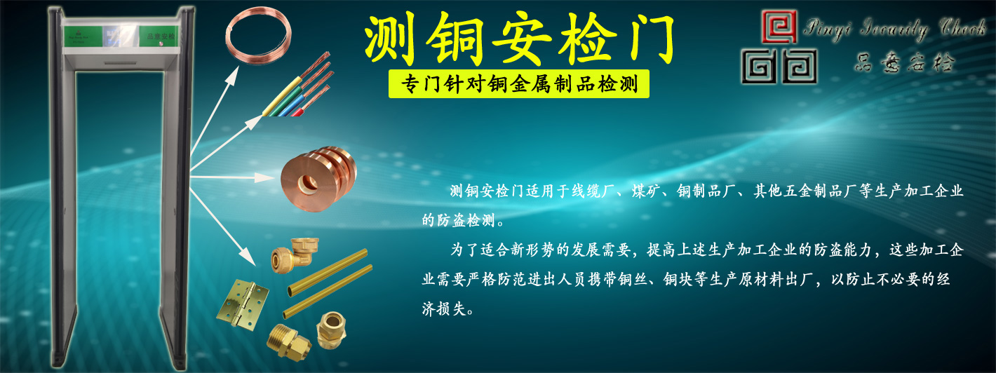 品意(探銅門)智能型銅制品探測儀是一款專門針對銅金屬制品檢測的防盜探測儀,本系統(tǒng)采用渦流檢測以及電磁感應(yīng)原理,集成微弱信號檢測技術(shù)、精密濾波技術(shù)、有限元分析技術(shù)、梯度測量技術(shù)、專家系統(tǒng)、自適應(yīng)識別等技術(shù),揚長避短,優(yōu)勢互補,可以根據(jù)不同金屬物體的渦流、電磁身份信息,判斷出被檢測人員所攜帶的物體,并準(zhǔn)確分辨出是否攜帶銅制品。主要適用于以銅金屬為原材料進行生產(chǎn)加工企業(yè)的防盜檢測,以此減少和杜絕因原材料和制成品的丟失而造成企業(yè)不必要的經(jīng)濟損失問題。?